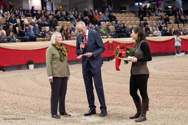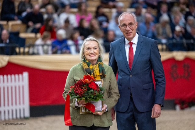 Die Laudatio hielt Dr. Norbert Camp, Erster Vorsitzender des geschäftsführenden Vorstandes des Trakehner Verbandes, der den großen Idealismus und die uneigennützige Hingabe von Beate Conle-Hüttner besonders hervorhob.